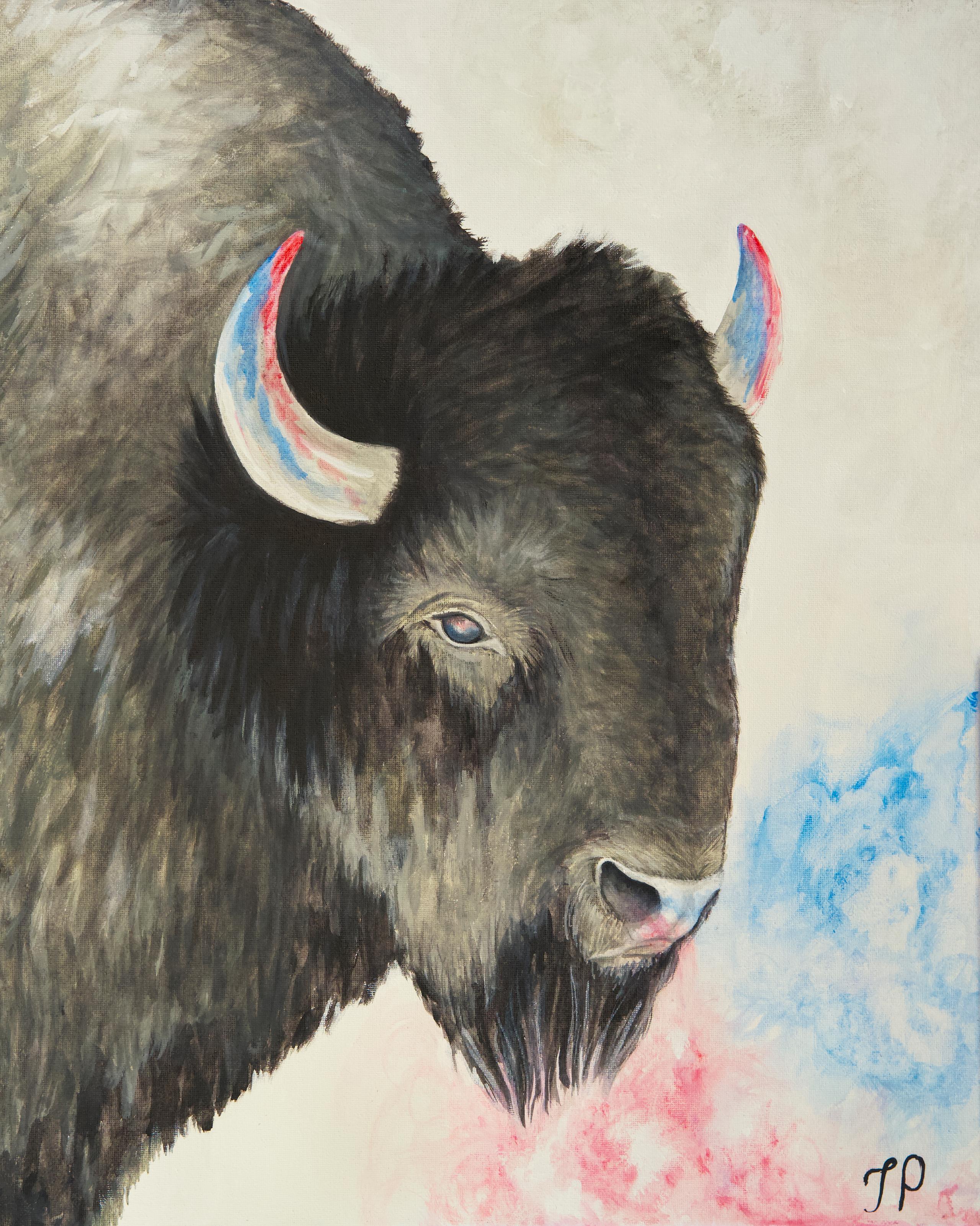 Two photographs I had taken in Yellowstone NP merged into one epic bison!